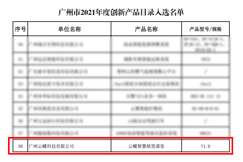 近日,廣州市科技創(chuàng)新企業(yè)協(xié)會公布《廣州市2021年度創(chuàng)新產(chǎn)品目錄入選名單》,云蝶智慧紙筆課堂,憑借數(shù)字科技助力教育現(xiàn)代化建設的實踐應用,成功上榜。