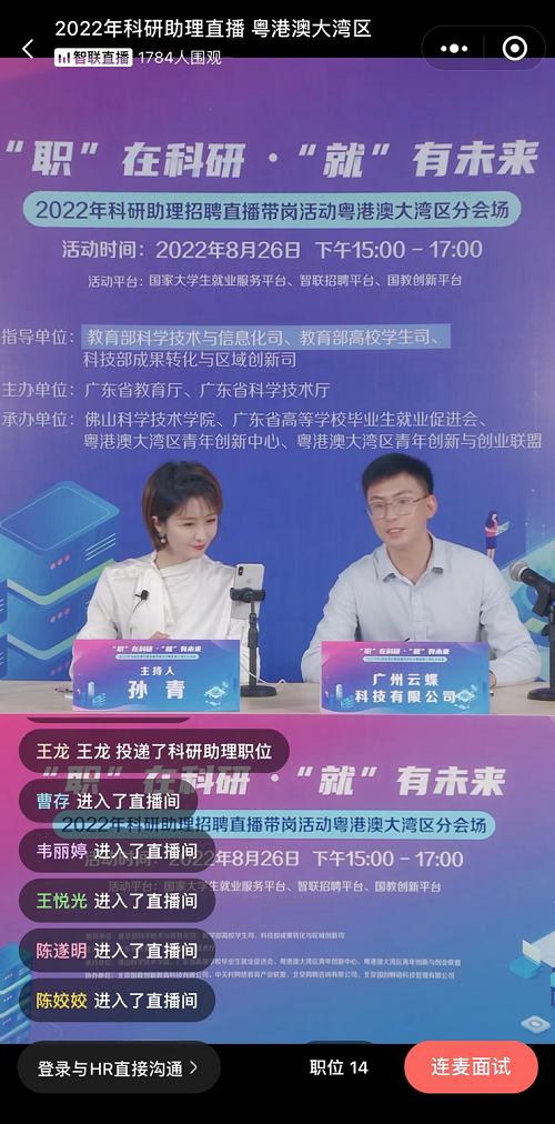 為搭建科研助理招聘單位和畢業(yè)生交流的平臺,近日,教育部“24365校園招聘服務(wù)”2022年全國科研助理招聘直播帶崗活動順利開展。