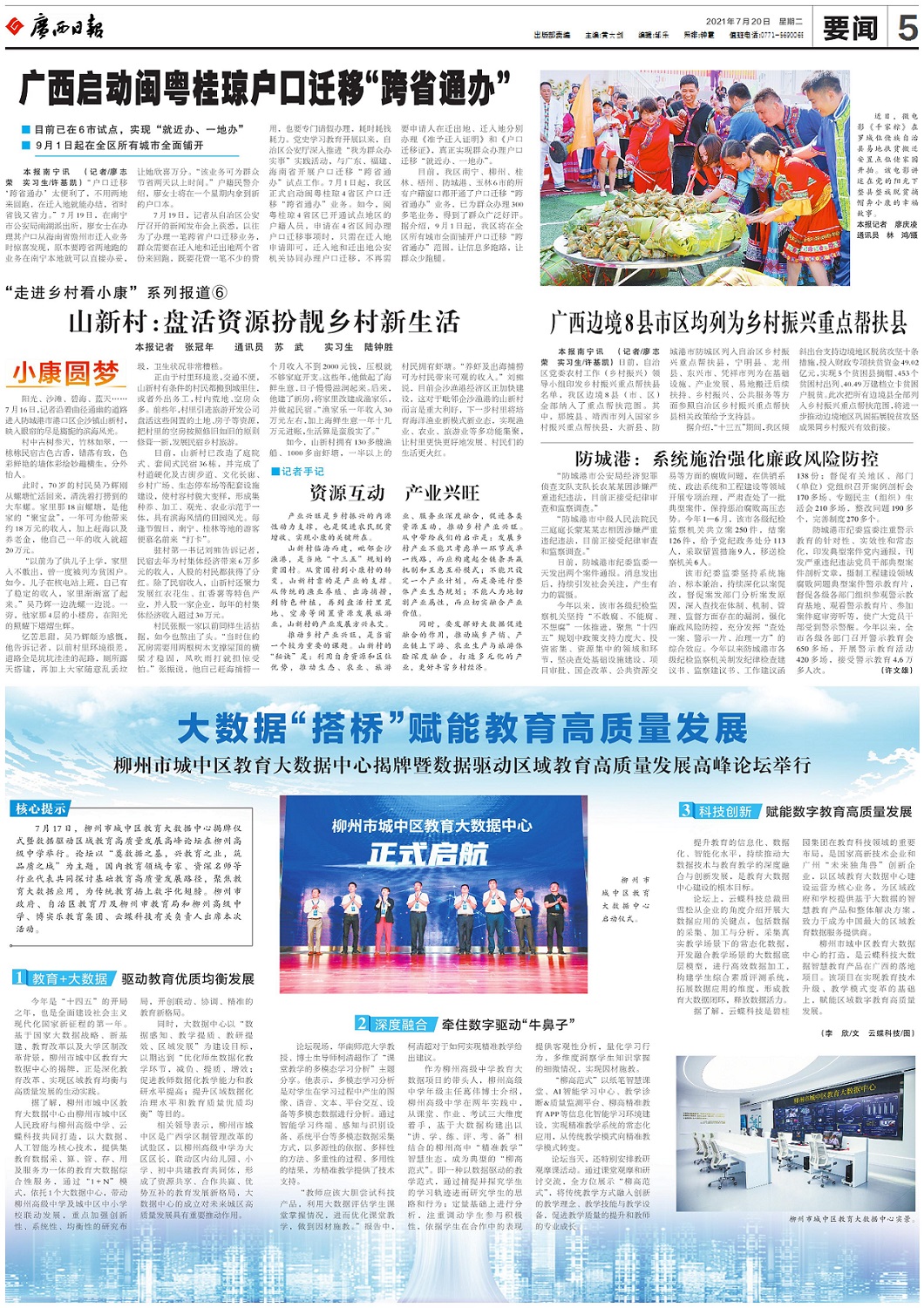 柳州市城中區(qū)教育大數(shù)據(jù)中心獲廣西日報報道